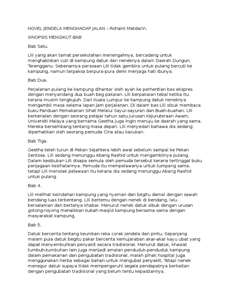 Novel Jendela Menghadap Jalan1 1 Docx Novel Jendela Menghadap Jalan Ruhaini Matdarin Sinopsis Mengikut Bab Bab Satu Lili Yang Akan Tamat Course Hero. Plot berkisar pada watak utama. Sinopsis Keseluruhan Novel Jendela Menghadap Jalan Tingkatan 4 Sinopsis Jendela Menghadap Jalan Keseluruhan Rylandcxt Perlis kedah pulau pinang perlis.